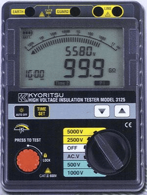 Đồng hồ đo điện trở cách điện Kyoritsu 3125: Dùng để đo, kiểm tra điện trở cách điện trong các nhà máy, thiết bị điện tử, điện lực, than khoáng sản, viễn thông….